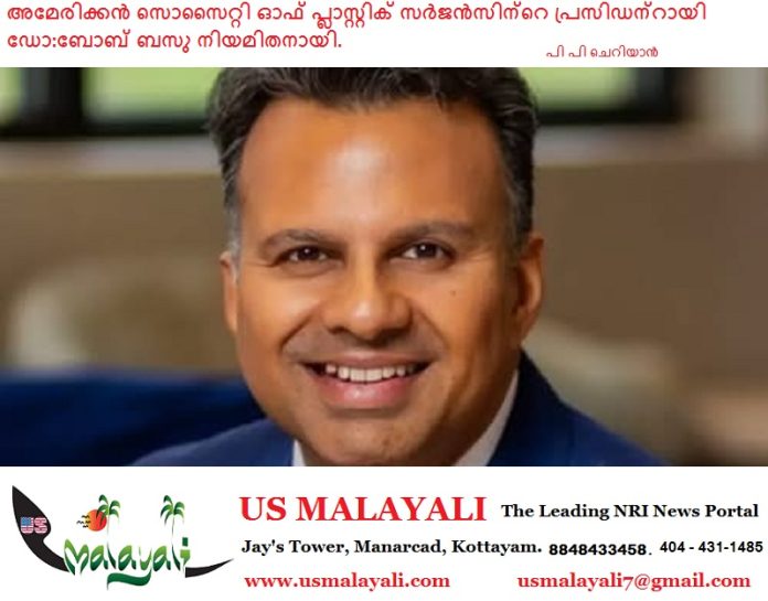 ന്യൂ ഓർലൻസ്(ലൂയിസിയാന):ഡോ. സി. ബോബ് ബസു അമേരിക്കൻ സൊസൈറ്റി ഓഫ് പ്ലാസ്റ്റിക് സർജൻസിന്റെ (ASPS) പ്രസിഡന്റായി നിയമിതനായി. ലോകത്തിലെ ഏറ്റവും വലിയ ബോർഡ് സർട്ടിഫൈഡ് പ്ലാസ്റ്റിക് സർജൻസിന്റെ സംഘടനയായ ASPS-ന്റെ പുതിയ പ്രസിഡന്റായി അദ്ദേഹം ഒക്ടോബർ 12-ന് ന്യൂ ഓർലൻസിൽ നടന്ന വാർഷിക ശാസ്ത്രീയ സമ്മേളനത്തിൽ ചുമതലയേറ്റു. അദ്ദേഹത്തിന്റെ കാലാവധി ഒരു വർഷത്തേക്കാണ്.