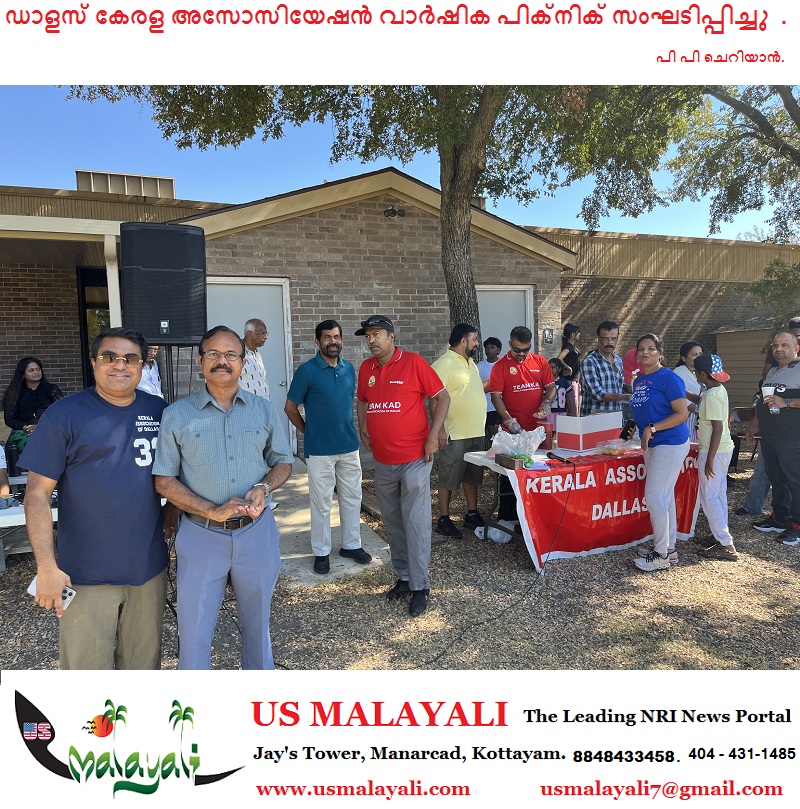 ഡാളസ്:ഡാളസിലെ കേരള അസോസിയേഷൻ സംവത്സരാഘോഷങ്ങളുടെ ഭാഗമായുള്ള വാർഷിക പിക്നിക്* ഒക്ടോബർ 11 ശനിയാഴ്ച,കേരള അസോസിയേഷൻ ഓഫിസിന്റെ ഗ്രൗണ്ടിൽ വിപുലമായി സംഘടിപ്പിച്ചു. രാവിലെ 10:00 മണിക്ക് ആരംഭിച്ച പരിപാടിയിൽ ഡാളസ് മെട്രോപ്ലെക്സിലെ വിവിധ ഭാഗങ്ങളിൽ നിന്നുള്ള **ദശകണക്കിന് അംഗങ്ങൾ** കുടുംബസമേതമായി എത്തിച്ചേർന്ന്, ദിവസം മുഴുവൻ ഉല്ലാസം പങ്കുവെച്ചു.