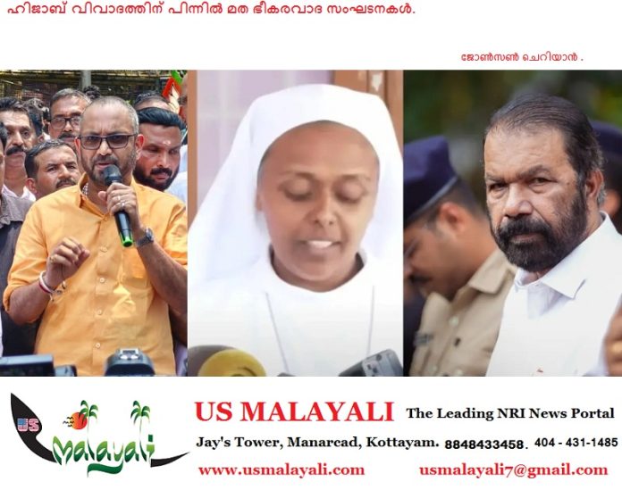 പള്ളുരുത്തി സെന്റ് റീത്താസ് പബ്ലിക് സ്കൂളിലെ ഹിജാബ് വിവാദത്തിൽ വിദ്യാഭ്യാസ മന്ത്രി വി ശിവൻകുട്ടിക്കെതിരെ ബിജെപി നേതാവ് കെ സുരേന്ദ്രൻ. ഹിജാബ് പ്രശ്നം കേരളത്തിൽ ഉയർത്തിക്കൊണ്ടു വരുന്നതിന് പിന്നിൽ മത ഭീകരവാദ സംഘടനകളാണ്. നിഷ്കളങ്കമായ താല്പര്യങ്ങളല്ല അതിന് പിന്നിലുള്ളത്. ക്രിസ്ത്യൻ മാനേജ്മെന്റുകളുടെ സ്കൂളിൽ പോയി നിസ്കാരം നടത്താൻപ്രത്യേക സ്ഥലം വേണം, ഹിജാബ് ധരിക്കണം എന്നിങ്ങനെ പറയുന്നതിന് പിന്നിൽ ബോധപൂർവമായി തന്ത്രം.