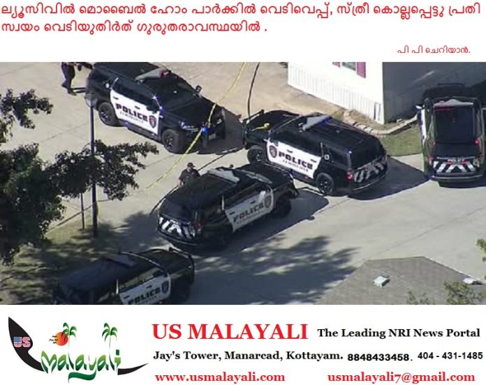 ല്യൂസിവിൽ (ടെക്സാസ്):ഈസ്റ്റ് സ്റ്റേറ്റ് ഹൈവേ 121-ൽ സ്ഥിതിചെയ്യുന്ന ഒരു മൊബൈൽ ഹോം പാർക്കിൽ ഇന്ന് (ബുധനാഴ്ച) ഉച്ചക്ക് ഒരു മണിക് നടന്ന ഇരട്ട ഷൂട്ടിംഗിൽ ഒരു പുരുഷൻ ഒരു സ്ത്രീയെ വെടിവച്ച് കൊലപ്പെടുത്തി പിന്നീട് പുരുഷൻ സ്വന്തം കഴുത്തിൽ വെടി വച്ചുകൊണ്ട് ആത്മഹത്യക്കു ശ്രമിക്കുകയും ചെയ്തു. സ്ത്രീ സംഭവസ്ഥലത്ത് തന്നെ മരണപ്പെടുകയും പുരുഷന് ഗുരുതരമായി പരിക്കേൽക്കുകയും ചെയ്തതായി പോലീസ് അറിയിച്ചു.