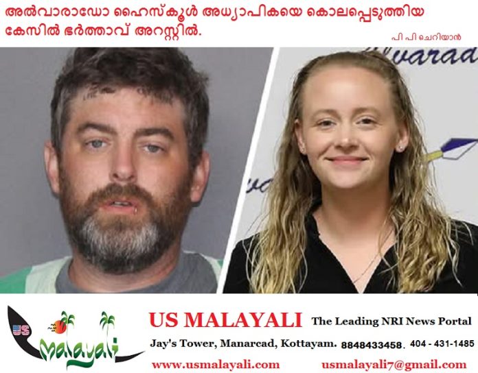 അൽവാരാഡോ( ടെക്സാസ്): അൽവാരാഡോ ഹൈസ്കൂളിലെ ബയോളജി, കെമിസ്ട്രി അധ്യാപിക ചെൽസി സ്പില്ലേഴ്സ് (33)യെ കൊലപ്പെടുത്തിയ കേസിൽ ഭർത്താവ് ബ്രാൻഡൻ ആഷ്ലിയെ പോലീസ് അറസ്റ്റ് ചെയ്തു. ഒക്ടോബർ 18-ന് സ്പില്ലേഴ്സ് അവരുടെ വീട്ടിൽ മരിച്ച നിലയിൽ കണ്ടെത്തിയതിനെത്തുടർന്ന്, അന്വേഷണത്തിൽ ഭർത്താവിന്റെ മർദ്ദനമൂലാമാണ് ഇവർ കൊല്ലപ്പെട്ടതെന്ന് കണ്ടെത്തി.