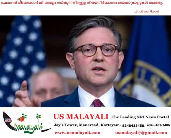വാഷിങ്ടൺ ഡി സി: സർക്കാർ ഷട്ട്ഡൗൺ സമയത്ത് നഷ്ടപരിഹാരം കൂടാതെ ജോലി ചെയ്തിരുന്ന ഫെഡറൽ ജീവനക്കാർക്ക് ശമ്പളം നൽകുന്നതിനുള്ള നിയമനിർമ്മാണം വ്യാഴാഴ്ച ഡെമോക്രാറ്റുകൾ തടഞ്ഞു, ,അത്യാവശ്യ സർക്കാർ ജീവനക്കാർക്ക് ശമ്പളം നൽകുന്നതിനായി റിപ്പബ്ലിക്കൻ അവതരിപ്പിച്ച ഒരു ജോഡി ബില്ലുകളാണ് സെനറ്റിൽ ഡെമോക്രാറ്റുകൾ പരാജയപ്പെടുത്തിയത്