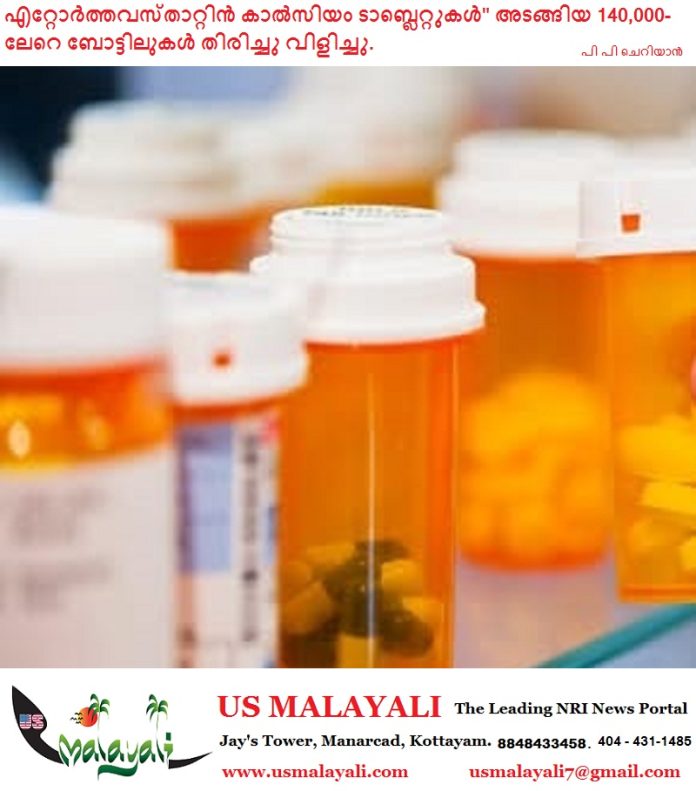 വാഷിംഗ്ടൺ ഡി സി :അമേരിക്കൻ ഫുഡ് ആന്റ് ഡ്രഗ് അഡ്മിനിസ്ട്രേഷൻ (FDA) എറ്റോർത്തവസ്താറ്റിൻ കാൽസിയം ടാബ്ലെറ്റുകളുടെ 140,000-ലേറെ ബോട്ടിലുകൾ recall ചെയ്തതായി പ്രഖ്യാപിച്ചു. ഈ മരുന്ന്, കോളസ്ട്രോൾ കുറയ്ക്കാൻ ഉപയോഗിക്കുന്ന സ്റ്റാറ്റിൻ വിഭാഗത്തിൽ പെടുന്നു, അതായത്, **ലിപിറ്റോർ** എന്ന പേരിൽ വ്യാപകമായി അറിയപ്പെടുന്ന ജനറിക് ഉൽപ്പന്നമാണ്.