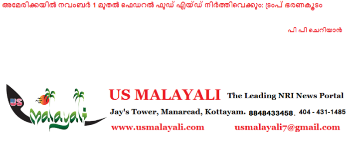 വാഷിംഗ്ടൺ:ഫെഡറൽ സർക്കാരിന്റെ അടച്ചുപൂട്ടൽ തുടരുന്നതിനിടെ നവംബർ 1 മുതൽ “SNAP” ഫുഡ് എയ്ഡ് വിതരണം നിർത്തിവെക്കുമെന്ന്,അമേരിക്കൻ കൃഷിവകുപ്പ് (USDA)** അറിയിച്ചു . ഇതോടെ രാജ്യത്തെ ലക്ഷക്കണക്കിന് കുടുംബങ്ങൾക്ക് ഭക്ഷണസഹായം നഷ്ടപ്പെടും.
