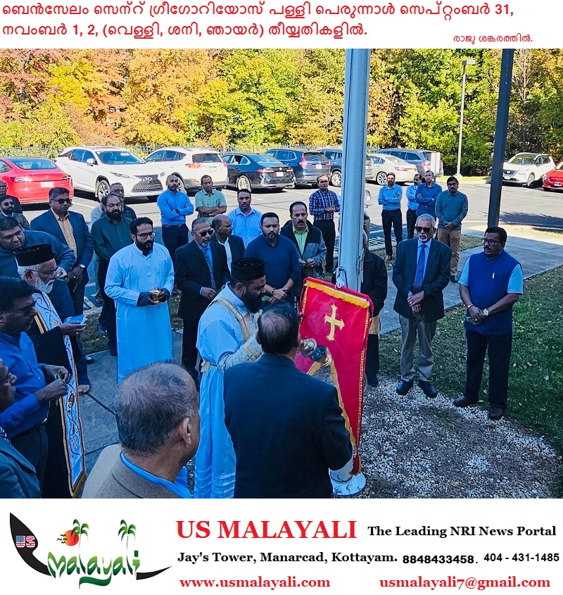 ബെൻസേലം: മലങ്കര ഓർത്തോഡോക്സ് സഭയുടെ പ്രഥമ പ്രഖ്യാപിത പരിശുദ്ധനായ പരുമല മാർ ഗ്രീഗോറിയോസ് തിരുമേനിയുടെ നാമധേയത്തിൽ സ്ഥാപിതമായതും, ആ പുണ്യവാന്റെ തിരുശേഷിപ്പ് സ്ഥാപനത്താൽ അനുഗ്രഹീതവുമായ ബെൻസേലം സെന്റ് ഗ്രിഗോറിയോസ് ഓർത്തോഡോക്സ് ദേവാലയത്തിലെ പരിശുദ്ധ പരുമല തിരുമേനിയുടെ 123–ാം ഓർമപ്പെരുന്നാൾ, 2025 ഒക്ടോബർ 31, നവംബർ 1, 2, (വെള്ളി, ശനി, ഞായർ) തീയ്യതികളിൽ ഭക്ത്യാദരപൂർവ്വം കൊണ്ടാടുന്നു. ഓർമ്മ പെരുന്നാളിന് തുടക്കം കുറിച്ചുകൊണ്ട്, ഒക്ടോബർ 26 ന് ഞായറാഴ്ച വിശുദ്ധ കുർബ്ബാനയ്ക്ക് ശേഷം ഇടവക വികാരി റവ. ഫാ. ഷിബു വേണാട് മത്തായി, റവ. ഫാ. കെ.പി. വർഗീസ് എന്നിവർ ചേർന്ന് പെരുന്നാൾ കൊടിയേറ്റ് നടത്തി.