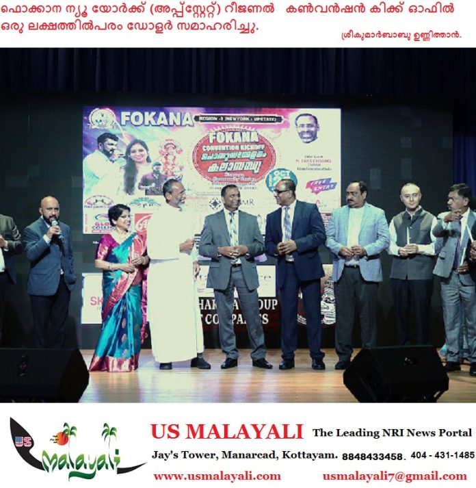 ന്യു യോർക്ക്:ഫൊക്കാന ന്യൂ യോർക്ക് (അപ്പ്സ്റ്റേറ്റ് ) റീജിയന്റെ കൺവെൻഷൻ കിക്കോഫിൽ അടുത്ത വര്ഷം ജൂലൈയിൽ പോക്കനോസിലെ കൽഹാരിയിൽ നടക്കുന്ന ഫൊക്കാന കൺവൻഷനു സ്പോണ്സറാമാരായി നിരവധി പേർ. ഒരു ലക്ഷത്തിൽപരം ഡോളർ ഫൊക്കാന ന്യൂ യോർക്ക് അപ്പ്സ്റ്റേറ്റ് റീജിയണൽ കൺവൻഷനിൽ നടന്ന കിക്ക് ഓഫിൽ സമാഹരിച്ചതായി ഭാരവാഹികൾ അറിയിച്ചു.