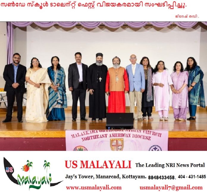 ഉച്ചകഴിഞ്ഞു സംഘടിപ്പിച്ച ടാലെന്റ്റ് ഷോയിൽ നോർത്ത് ഈസ്റ്റ് അമേരിക്കൻ ഭദ്രാസനത്തിലെ വിവിധ റീജിയനുകളെ പ്രതിനിധീകരിച്ചു പങ്കെടുത്ത ദേവാലയങ്ങളിലെ കുട്ടികൾ അവതരിപ്പിച്ച ഗ്രൂപ്പ് ഡാൻസും, ഗാനങ്ങളും, സ്കിറ്റും ഉൾപ്പെടയുള്ള കലാവിരുന്ന് ഹൃദ്യമായി. ഡോ ഷൈനി രാജു കോ ഓർഡിനേറ്റർ ആയിരുന്ന ഈ പരിപാടിയിൽ അലക്സിയ ജേക്കബും, ആലിസൻ തരിയനും എം സി മാരായി പ്രവർത്തിച്ചു . സൺഡേ സ്കൂൾ ട്രഷറർ ജോൺ ജേക്കബ് എല്ലാവർക്കും ക്രതജ്ഞത അറിയിച്ചു