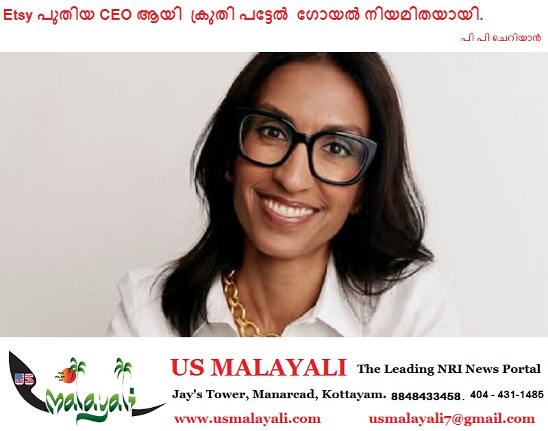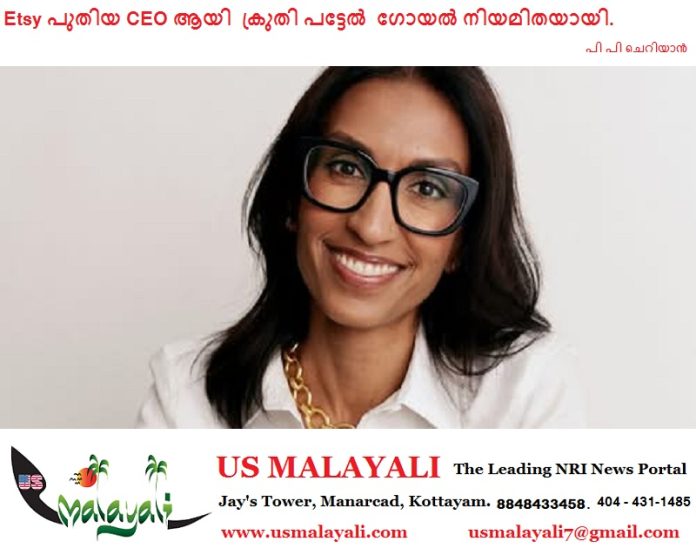 ബ്രൂക്ക്ലിൻ, NY: Etsy, Inc. ലോകവ്യാപകമായി പണിയും വിറ്റഴിക്കുന്നവർക്കും വാങ്ങുന്നവർക്കും അനുയോജ്യമായ ഓൺലൈൻ മാർക്കറ്റ്പ്ലേസുകൾ പ്രവർത്തിക്കുന്ന Etsy, Inc. 2026 ജനുവരി 1 മുതൽ ക്രുതി പട്ടേൽ ഗോയലിനെ പുതിയ CEO ആയി നിയമിച്ചു. ഗോയൽ Etsy-യുടെ പ്രസ്തുത പ്രസിഡന്റും ചീഫ് ഗ്രോത്ത് ഓഫീസറുമാണ്.