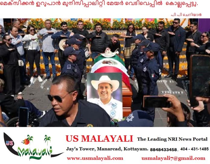 ഉറുപ്പാൻ( മെക്സിക്കോ): മെക്സിക്കോയുടെ പടിഞ്ഞാറൻ സംസ്ഥാനമായ മൈക്കോവാക്കനിലെ ഒരു മേയറെ മരിച്ചവരുടെ ദിനാഘോഷത്തിനായി ഒത്തുകൂടിയ ഡസൻ കണക്കിന് ആളുകളുടെ മുന്നിൽ ഒരു പ്ലാസയിൽ വെടിവച്ചു കൊന്നതായി അധികൃതർ പറഞ്ഞു.