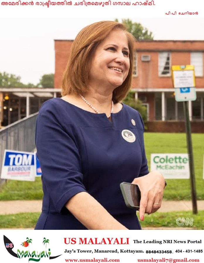 റിച്ച്മണ്ട്(വിർജീനിയ) : വിർജീനിയയുടെ അടുത്ത ലെഫ്റ്റനന്റ് ഗവർണറായി ഗസാല ഹാഷ്മി തിരഞ്ഞെടുക്കപ്പെട്ടതോടെ, അമേരിക്കൻ രാഷ്ട്രീയത്തിൽ ചരിത്രം സൃഷ്ടിച്ചു. ഹാഷ്മി വിർജീനിയയിൽ മാത്രമല്ല, അമേരിക്കയിലുടനീളം സംസ്ഥാനതല പദവിയിലേക്കു തെരഞ്ഞെടുക്കപ്പെടുന്ന ആദ്യ മുസ്ലിം വനിത, ആദ്യ ഇന്ത്യൻ-അമേരിക്കൻ, ആദ്യ ദക്ഷിണേഷ്യൻ-അമേരിക്കൻ എന്ന നിലയിലും നേട്ടം നേടി.