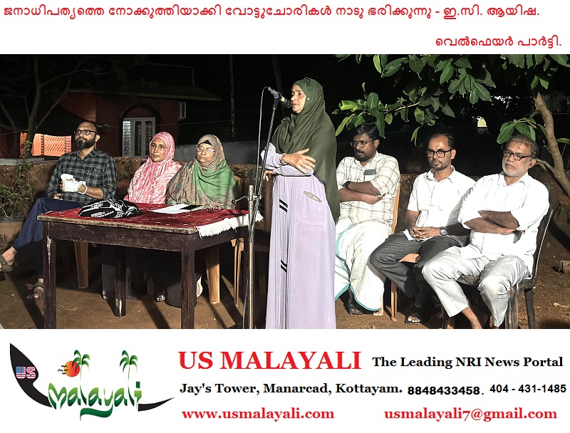 ജനാധിപത്യത്തെ നോക്കുത്തിയാക്കി വോട്ടുചോരികൾ നാടു ഭരിക്കുന്ന ഫാഷിസ്റ്റ് കാലത്ത് ജനാധിപത്യത്തിന്റെ കാവലാളുകളാവുക എന്നത് കാലത്തിന്റെ അനിവാര്യതയാണെന്ന് വെൽഫെയർ പാർട്ടി സംസ്ഥാന കമ്മിറ്റി അംഗം ഇ.സി. ആയിഷ പറഞ്ഞു.