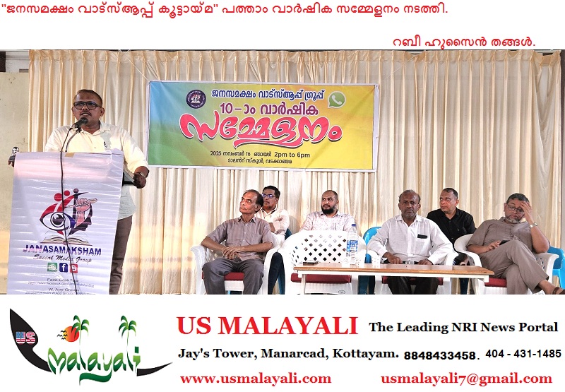 വടക്കാങ്ങര : സാമൂഹിക സേവന രംഗത്ത് സജീവമായ ജനസമക്ഷം വാട്സപ്പ് ഗ്രൂപ്പുകളുടെ പത്താം വാർഷിക സമ്മേളനം വടക്കാങ്ങര ടാലൻറ് പബ്ലിക് സ്കൂളിൽ നടന്നു. കേരളത്തിന്റെ വിവിധ ഭാഗങ്ങളിൽ നിന്നുള്ള ഗ്രൂപ്പ് അംഗങ്ങൾ പരിപാടിയിൽ പങ്കെടുത്തു.