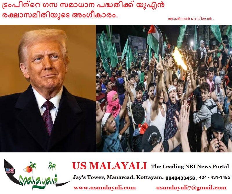 അമേരിക്കൻ പ്രസിഡന്റ് ഡോണൾഡ് ട്രംപിന്റെ ഗസ സമാധാനപദ്ധതിക്ക് അംഗീകാരം നൽകി യുഎൻ രക്ഷാസമിതി. ബ്രിട്ടൻ , ഫ്രാൻസ് , സൊമാലിയ ഉൾപ്പെടെ 13 രാജ്യങ്ങൾ നിർദേശത്തെ പിന്തുണച്ചു. റഷ്യയും ചൈനയും വോട്ടെടുപ്പിൽ നിന്നും വിട്ടുനിന്നു.