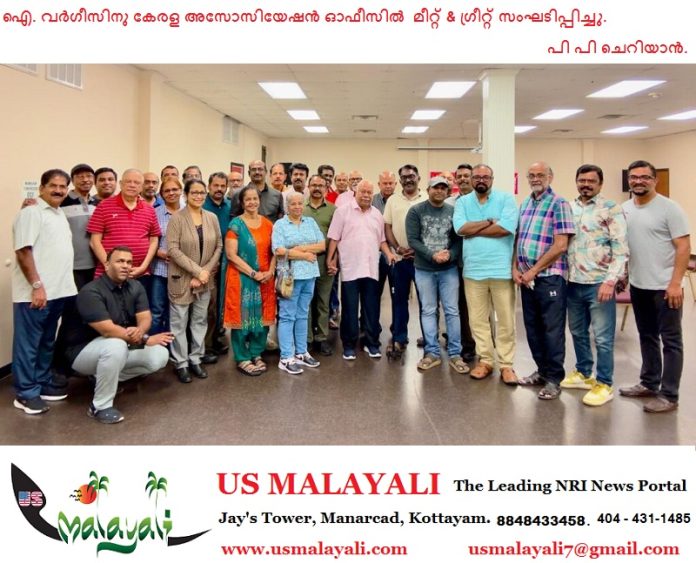 ഡാളസ് : 50 വർഷം പിന്നീടുന്ന കേരള അസോസിയേഷൻ ഓഫ് ഡാളസിന്റെ മുന്നണി പോരാളിയും സമാനതയില്ലാത്ത സംഘാടകനുമായ ഐ. വർഗീസിനു ഡാളസ് കേരള അസോസിയേഷൻ ഓഫീസിൽ മീറ്റ് & ഗ്രീറ്റ് സംഘടിപ്പിച്ചു.