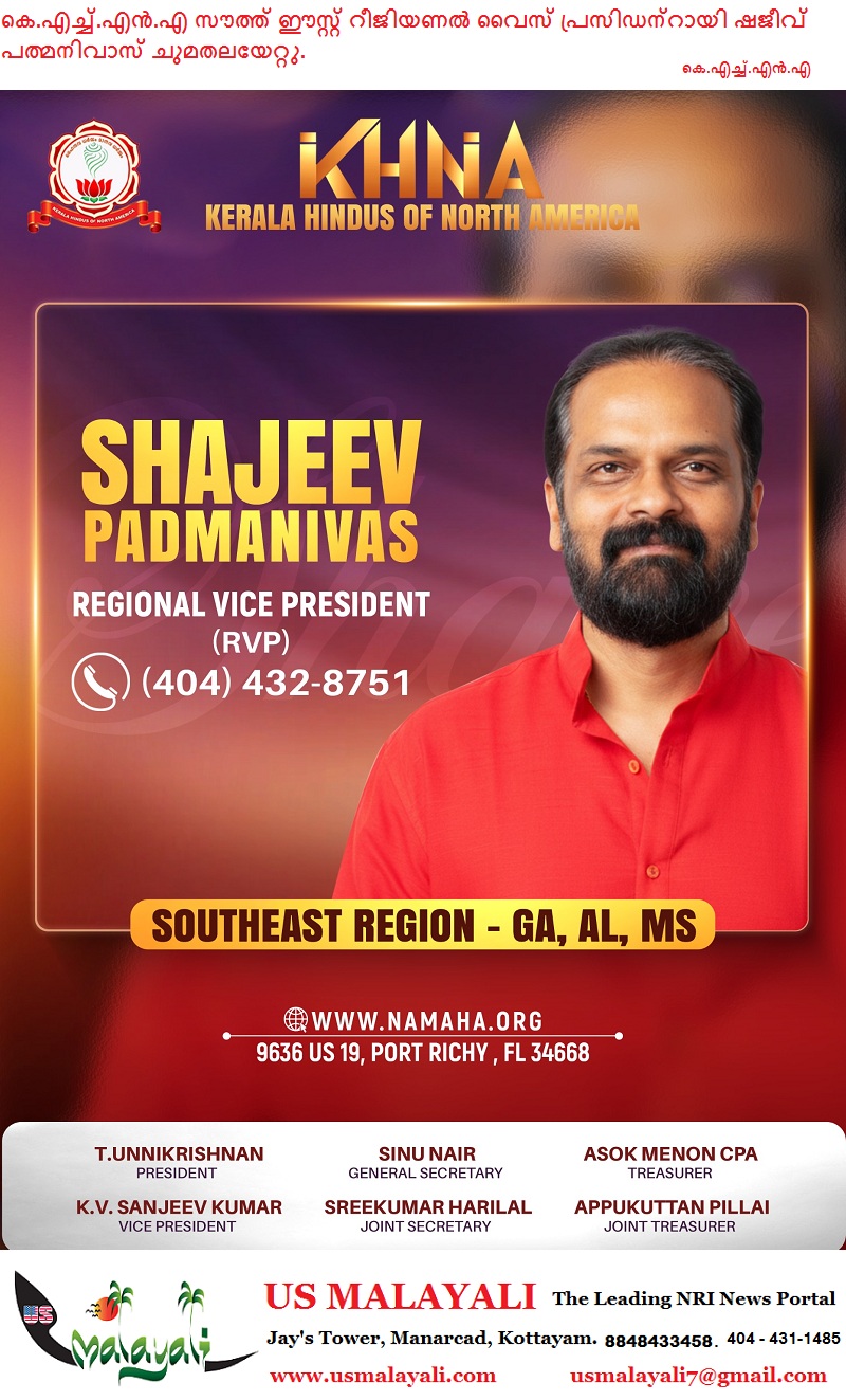 “ഷാജീവ്ൻ്റെ സംഘടനാ വൈദഗ്ധ്യവും സാംസ്കാരിക പ്രതിബദ്ധതയും സൗത്ത് ഈസ്റ്റ് മേഖലയിലെ കെ.എച്ച്.എൻ.എയുടെ പ്രവർത്തനങ്ങൾക്ക് പുതിയ ഊർജ്ജം പകരുമെന്ന് ഉറപ്പാണ്. ഹൈന്ദവ സമൂഹത്തിൻ്റെ സാംസ്കാരിക ഉണർവിനും ഐക്യത്തിനും അദ്ദേഹത്തിൻ്റെ നേതൃത്വം മുതൽക്കൂട്ടാകും,” കെ.എച്ച്.എൻ.എ പ്രസിഡന്റ് ടി. ഉണ്ണികൃഷ്ണൻ അഭിപ്രായപ്പെട്ടു.