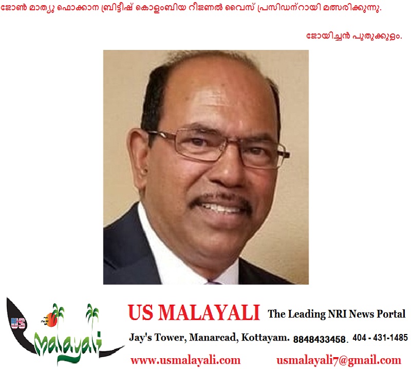 കാനഡയിലെ സാമൂഹിക- സംഘടനാ നേതാവായ മാത്യു ജോണ് ഫൊക്കാനയുടെ 2026- 28 തെരഞ്ഞെടുപ്പില് ബ്രിട്ടീഷ് കൊളംബിയ റീജണല് വൈസ് പ്രസിഡന്റായി ലീലാ മാരേട്ട് പാനലില് മത്സരിക്കുന്നു. മത്സരിക്കുന്നു. കഴിഞ്ഞ നാല്പ്പത് വര്ഷമായി വിവിധ സംഘടനകളില് എക്സിക്യൂട്ടീവ് പദവികള് വഹിച്ചുവരുന്ന അദ്ദേഹത്തിന്റെ സാമൂഹിക പ്രതിബദ്ധത തികച്ചും മാതൃകാപരമാണ്.