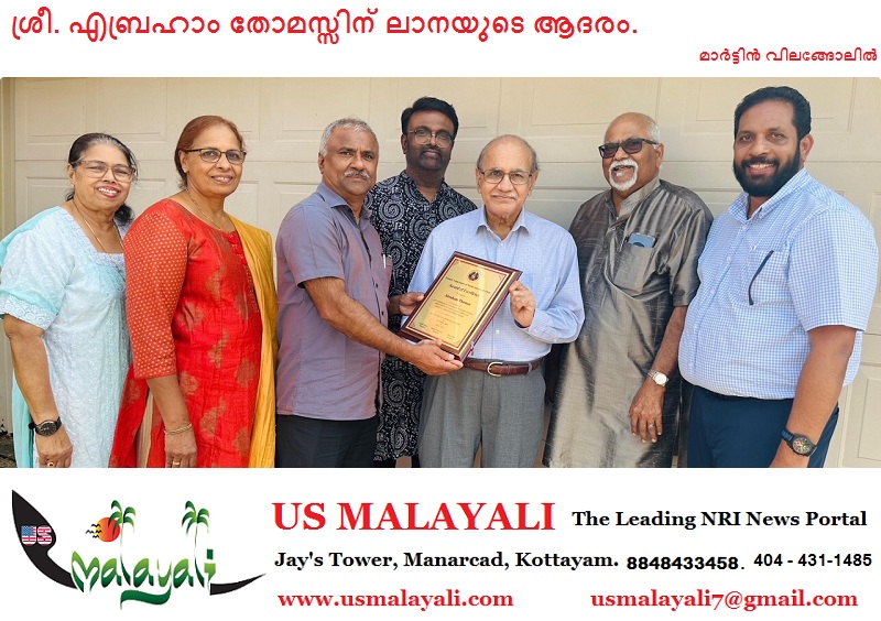 അമേരിക്കൻ മലയാളികളുടെ സാഹിത്യസംഘടനയായ ലാനയുടെ ദ്വൈവാർഷിക സമ്മേളന വേദിയിലാണ് ആദരവ് ചടങ്ങ് ഒരുക്കിയത്.