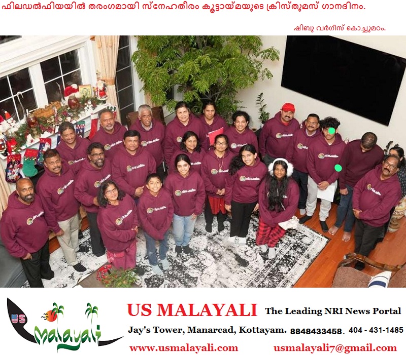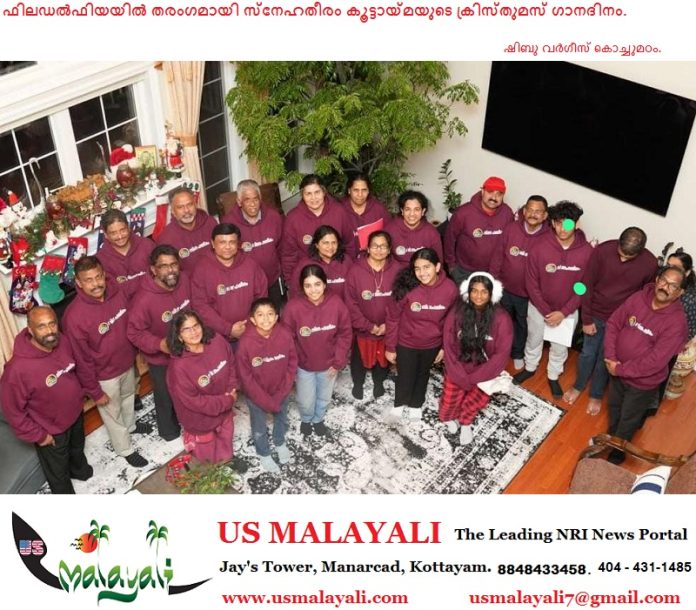 ഗുഡ് സമരിറ്റൻ കമ്മ്യൂണിറ്റി സ്നേഹതീരം കൂട്ടായ്മയുടെ ക്രിസ്തുമസ് ഗാനദിനം ഫിലഡൽഫിയയിൽ തരംഗമായി. സ്നേഹതീരം കൂട്ടായ്മയുടെ ക്രിസ്തുമസ് ഗാനദിനം തിരുപ്പിറവിക്ക് മുൻപായുള്ള ഒരു പുതിയ തുടക്കമായി.