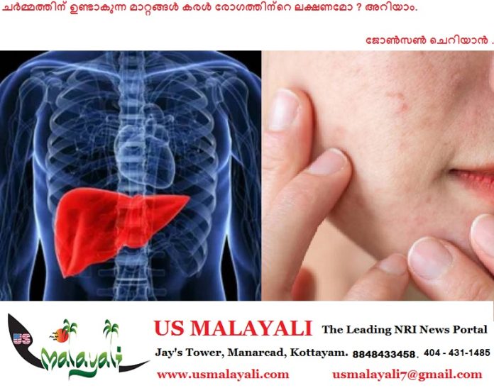 ശരീരത്തിലെ മാലിന്യങ്ങൾ നീക്കം ചെയ്യുന്നതിനും രക്തത്തിനെ ശുദ്ധീകരിക്കുന്നതിനും കരൾ വഹിക്കുന്ന പങ്ക് വളരെ വലുതാണ്. ദഹനത്തിന് സഹായിക്കുന്ന പിത്തരസം ഉത്പാദിപ്പിക്കുന്നതും പ്രോട്ടീൻ നിർമ്മിക്കുന്നതും കരളിന്റെ പ്രവർത്തനത്തിൽ ഉൾപ്പെടുന്നു.എന്നാൽ കരളിന്റെ പ്രവർത്തിനുണ്ടാകുന്ന മാറ്റം പലപ്പോഴും പ്രകടമാകുന്നത് നമ്മുടെ ചർമ്മത്തിലൂടെയാകും.ജേണൽ ഓഫ് ക്ലിനിക്കൽ ആൻഡ് എക്സ്പിരിമെന്റൽ ഹെപ്പറ്റോളജിയിൽ പ്രസിദ്ധീകരിച്ച പഠനത്തിൽ ചർമത്തിലുണ്ടാകുന്ന പിഗ്മെന്റേഷൻ, ചർമത്തിന്റെ ഘടനയിലുണ്ടാകുന്ന വ്യത്യാസം എന്നിവ കരൾ രോഗത്തിന്റെ ലക്ഷണങ്ങളാണെന്ന് കണ്ടെത്തി.