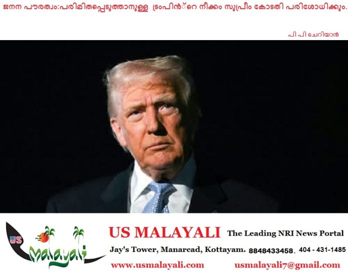 വാഷിംഗ്ടൺ ഡി സി : അമേരിക്കൻ ഐക്യനാടുകളിൽ ജനിക്കുന്ന ആർക്കും പൗരത്വം ഉറപ്പാക്കുന്ന ‘ജനനത്തിലുള്ള പൗരത്വം’ (Birthright Citizenship) എന്ന ഭരണഘടനാപരമായ അവകാശം പരിമിതപ്പെടുത്താനുള്ള പ്രസിഡൻ്റ് ഡൊണാൾഡ് ട്രംപിൻ്റെ വിവാദപരമായ പദ്ധതിയുടെ നിയമസാധുത സുപ്രീം കോടതി പരിശോധിക്കും.
