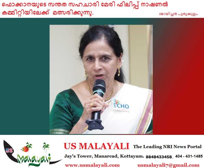 ന്യൂ യോർക്ക് : ഫൊക്കാനയുടെ 2024-2026 ഭരണസമിതിയിൽ നാഷണൽ കമ്മിറ്റിയിലേക്ക് കേരളാ സമാജം ഓഫ് ന്യൂ യോർക്കിന്റെ മുൻ സെക്രട്ടറിയും ഇപ്പോഴത്തെ നാഷണൽ കമ്മിറ്റി മെമ്പറും ആയ മേരി ഫിലിപ്പ് നാഷണൽ കമ്മിറ്റിയിലേക്ക് മത്സരിക്കുന്നു.