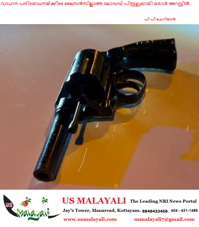 ചിക്കാഗോ: സൗത്ത് ലൂപ്പിൽ വെച്ച് വാഹനപരിശോധനയ്ക്കിടെ ലൈസൻസില്ലാത്ത ലോഡഡ് പിസ്റ്റളുമായി ചിക്കാഗോ സ്വദേശിയായ ഒരാൾ അറസ്റ്റിലായി.