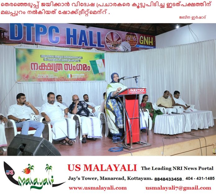 1. ജില്ലയിൽ തദ്ദേശ തെരഞ്ഞെടുപ്പിൽ പാർട്ടിക്ക് വേണ്ടി മത്സരിച്ച സ്ഥാനാർഥികൾക്കും ജയിച്ച ജനപ്രതിനിധികൾക്കും വെൽഫെയർ പാർട്ടി മലപ്പുറം ജില്ലാ കമ്മിറ്റി മലപ്പുറം കോട്ടക്കുന്ന് ഡി ടി പി സി ഹാളിൽ നൽകിയ സ്വീകരണ പരിപാടി സംസ്ഥാന ജനറൽ സെക്രട്ടറി ജബീന ഇർഷാദ് ഉദ്ഘാടനം ചെയ്ത് സംസാരിക്കുന്നു.