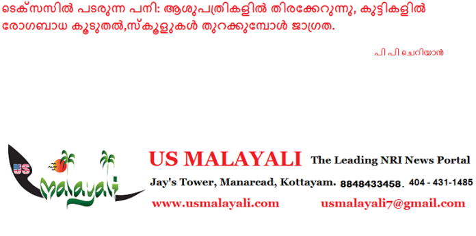 കഴിഞ്ഞ മാസത്തെ അപേക്ഷിച്ച് ആശുപത്രികളിൽ പനിയുമായി എത്തുന്നവരുടെ എണ്ണം ഇരട്ടിയായി വർധിച്ചുവെന്ന് ആരോഗ്യ വകുപ്പ് അറിയിച്ചു. ടെക്സസ് ഉൾപ്പെടെ ഒൻപത് സംസ്ഥാനങ്ങളിൽ നിലവിൽ പനി ബാധ അതിരൂക്ഷമാണ്.