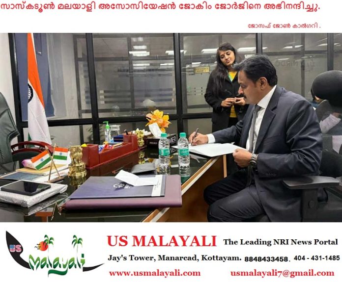 സാസ്കടൂൺ: സാസ്കടൂൺ മലയാളി അസോസിയേഷൻ (SMA) എക്സിക്യൂട്ടീവ് കമ്മിറ്റി അംഗമായ ശ്രീ. ജോകിം ജോർജിൻറെ പുതിയ സ്ഥാനലബ്ധിയിൽ അസോസിയേഷൻ എക്സിക്യൂട്ടീവ് കമ്മിറ്റി അഭിനന്ദനം രേഖപ്പെടുത്തി .