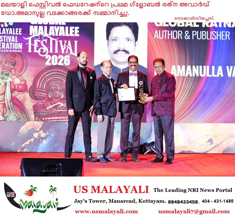 കൊച്ചി. വിവിധ ഭാഷകളിലായി 100 പുസ്തകങ്ങള് പ്രസിദ്ധീകരിച്ച ആദ്യ പ്രവാസി മലയാളിയായ ഡോ.അമാനുല്ല വടക്കാങ്ങരക്ക് മലയാളി ഫെസ്റ്റിവല് ഫെഡറേഷന്റെ ഗ്രന്ഥരചനക്കുള്ള പ്രഥമ ഗ്ളോബല് രത്ന അവാര്ഡ് സമ്മാനിച്ചു