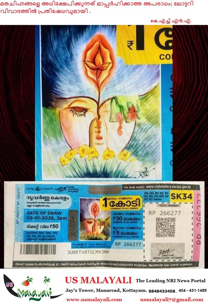 വിശ്വാസികളുടെ വികാരം വ്രണപ്പെടുത്തിയ ഈ നടപടിക്കെതിരെ കെ.എച്ച്.എൻ.എ. ഭരണസമിതി ഔദ്യോഗികമായി പ്രതിഷേധ പ്രമേയം പാസാക്കി. കേരള സർക്കാരിന്റെ ‘സുവർണ്ണ കേരളം’ ലോട്ടറി ടിക്കറ്റിൽ ഹൈന്ദവ വിശ്വാസങ്ങളെയും ചിഹ്നങ്ങളെയും അപമാനിക്കുന്ന തരത്തിലുള്ള ചിത്രം ഉൾപ്പെടുത്തിയ നടപടിയിൽ കേരള ഹിന്ദുസ് ഓഫ് നോർത്ത് അമേരിക്ക (KHNA) ശക്തമായ പ്രതിഷേധം രേഖപ്പെടുത്തി. ഭാരതീയർ പവിത്രമായി കാണുന്ന ശിവലിംഗത്തെ ആർത്തവരക്തവുമായി ബന്ധിപ്പിച്ച് വികലമായി ചിത്രീകരിച്ചത് ലോകമെമ്പാടുമുള്ള ഹിന്ദു വിശ്വാസികളെ അവഹേളിക്കുന്നതിന് തുല്യമാണെന്ന് കെ.എച്ച്.എൻ.എ. പ്രസിഡന്റ് ഉണ്ണികൃഷ്ണൻ അറിയിച്ചു.