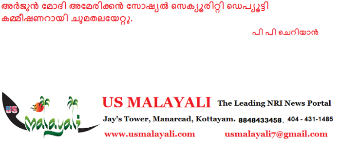 വാഷിംഗ്ടൺ ഡി സി :ഇന്ത്യൻ വംശജനായ അർജുൻ മോദി അമേരിക്കൻ സോഷ്യൽ സെക്യൂരിറ്റി അഡ്മിനിസ്ട്രേഷൻ (SSA) ഡെപ്യൂട്ടി കമ്മീഷണറായി ജനുവരി 5-ന് സത്യപ്രതിജ്ഞ ചെയ്ത് ചുമതലയേറ്റു. 2031 ജനുവരി വരെയാണ് അദ്ദേഹത്തിന്റെ കാലാവധി.