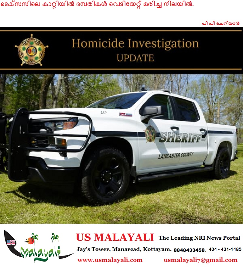ഹാരിസ് കൗണ്ടി: അമേരിക്കയിലെ ഹാരിസ് കൗണ്ടിയിലുള്ള കാറ്റി (Katy) മേഖലയിൽ ദമ്പതികളെ വീടിനുള്ളിൽ വെടിയേറ്റ് മരിച്ച നിലയിൽ കണ്ടെത്തി. തിങ്കളാഴ്ച പുലർച്ചെ അഞ്ചരയോടെയാണ് സംഭവം നടന്നത്.