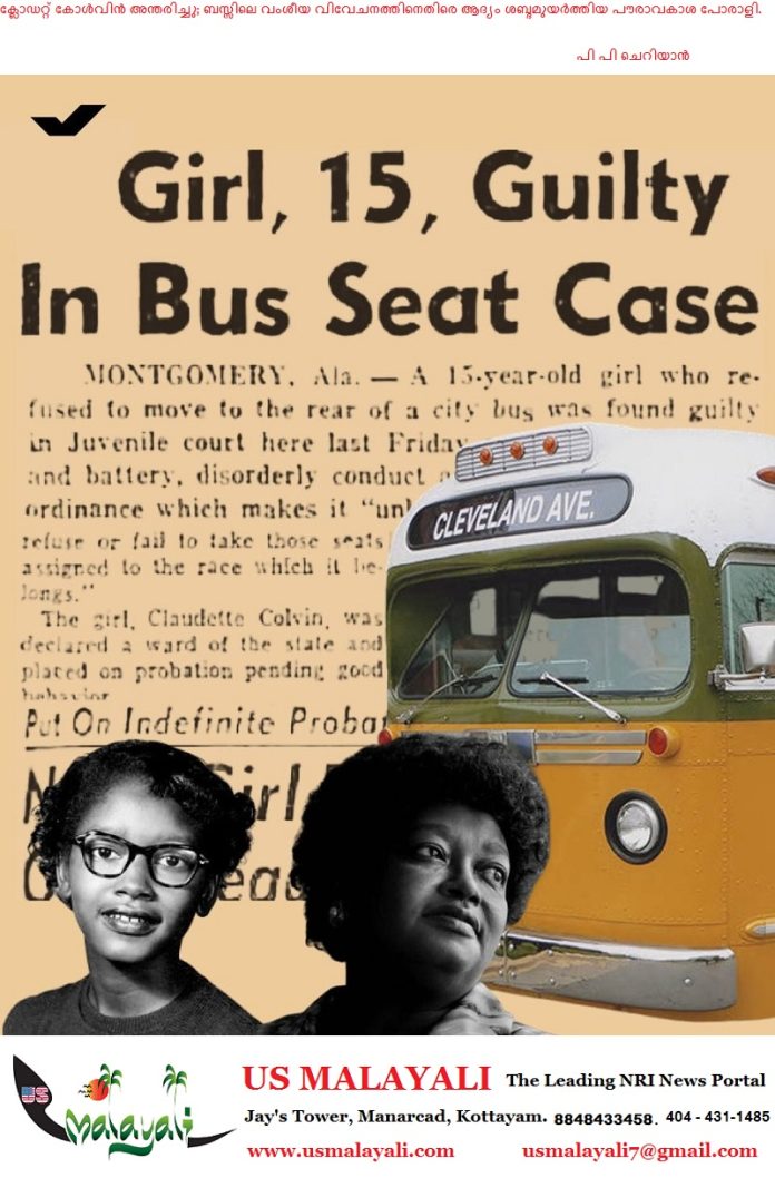 മോണ്ട്ഗോമറി, അലബാമ: അമേരിക്കയിലെ കറുത്തവർഗക്കാരുടെ പൗരാവകാശ പോരാട്ടങ്ങൾക്ക് തുടക്കമിട്ട ചരിത്രപ്രസിദ്ധമായ ‘ബസ് ബഹിഷ്കരണ’ സമരത്തിന്റെ ആദ്യ വിത്തുപാകിയ ക്ലോഡറ്റ് കോൾവിൻ (86) അന്തരിച്ചു. വാർദ്ധക്യസഹജമായ കാരണങ്ങളാൽ ടെക്സാസിൽ വെച്ചായിരുന്നു അന്ത്യം.
