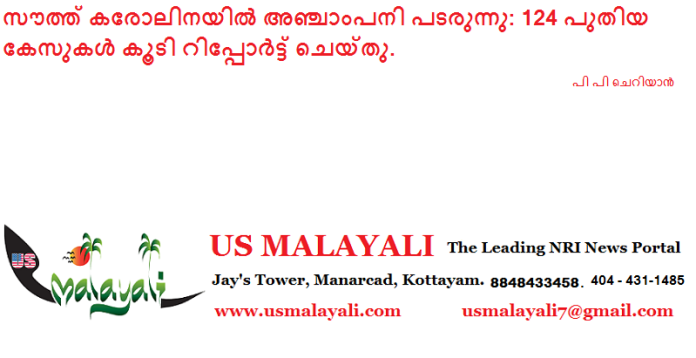 സൗത്ത് കരോലിന:സൗത്ത് കരോലിനയിൽ അഞ്ചാംപനി പടരുന്ന സാഹചര്യത്തിൽ 124 പുതിയ കേസുകൾ കൂടി റിപ്പോർട്ട് ചെയ്തതായി ആരോഗ്യവകുപ്പ് അറിയിച്ചു. ഇതോടെ സംസ്ഥാനത്തെ ആകെ രോഗബാധിതരുടെ എണ്ണം 434 ആയി ഉയർന്നു.