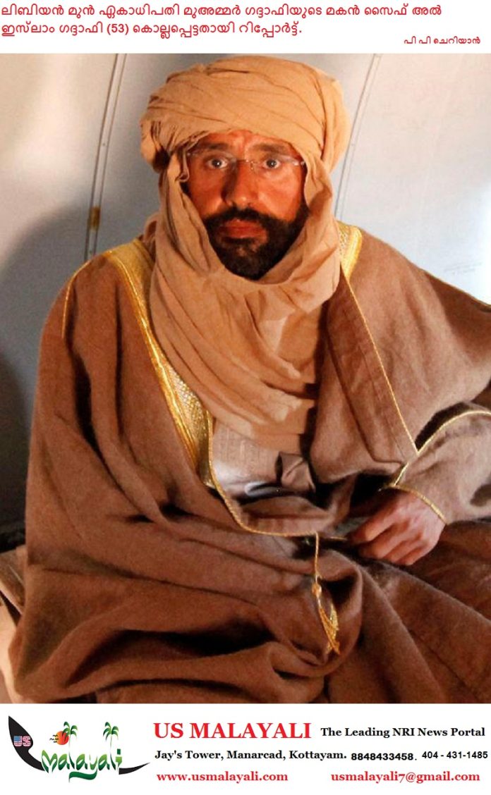 ലിബിയൻ മുൻ ഏകാധിപതി മുഅമ്മർ ഗദ്ദാഫിയുടെ മകൻ സൈഫ് അൽ ഇസ്ലാം ഗദ്ദാഫി (53) കൊല്ലപ്പെട്ടതായി റിപ്പോർട്ട്.