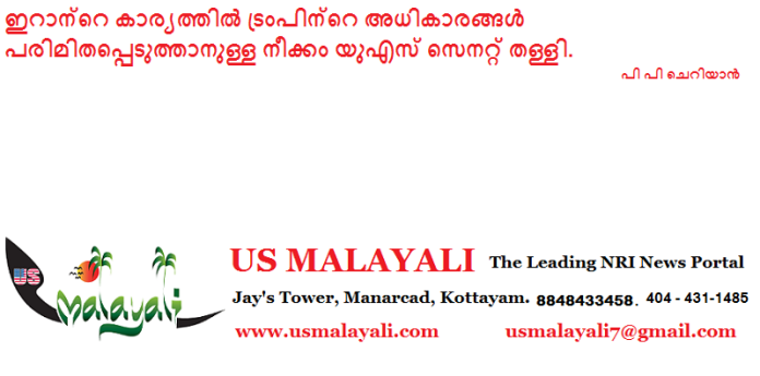 വാഷിംഗ്ടൺ ഡി സി :ഇറാനെതിരെയുള്ള സൈനിക നടപടികളിൽ പ്രസിഡന്റ് ഡൊണാൾഡ് ട്രംപിന് നിയന്ത്രണമേർപ്പെടുത്താനുള്ള ഡെമോക്രാറ്റുകളുടെ ശ്രമം അമേരിക്കൻ സെനറ്റ് പരാജയപ്പെടുത്തി. ബുധനാഴ്ച നടന്ന വോട്ടെടുപ്പിൽ 47-നെതിരെ 53 വോട്ടുകൾക്കാണ് പ്രമേയം തള്ളിയത്.