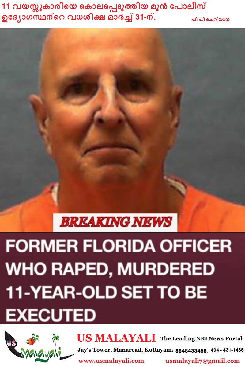ഫ്ലോറിഡ :1987-ൽ 11 വയസ്സുകാരിയെ പീഡിപ്പിച്ചു കൊലപ്പെടുത്തിയ കേസിൽ മുൻ പോലീസ് ഉദ്യോഗസ്ഥനായ ജെയിംസ് ആറൻ ഡക്കറ്റിന്റെ വധശിക്ഷ മാർച്ച് 31-ന് നടപ്പിലാക്കാൻ ഫ്ലോറിഡ ഗവർണർ റോൺ ഡിസാന്റിസ് ഉത്തരവിട്ടു.