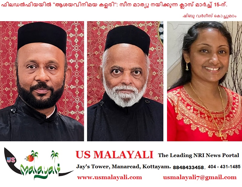 ഫിലഡൽഫിയ: കുടുംബബന്ധങ്ങളിലും സാമൂഹിക ജീവിതത്തിലും ശരിയായ ആശയവിനിമയത്തിന്റെ പ്രാധാന്യം വിളിച്ചോതിക്കൊണ്ട് ‘ഫലപ്രദമായ ആശയവിനിമയം കെട്ടിപ്പടുക്കാം’ (Building Effective Communication) എന്ന വിഷയത്തിൽ പ്രത്യേക ക്ലാസ് സംഘടിപ്പിക്കുന്നു. ഗുഡ് സമരിറ്റൻ കമ്മ്യൂണിറ്റി (സ്നേഹതീരം), സെന്റ് മേരീസ് ക്നാനായ ചർച്ച് എന്നിവർ സംയുക്തമായാണ് ഈ പരിപാടി ഒരുക്കുന്നത്.