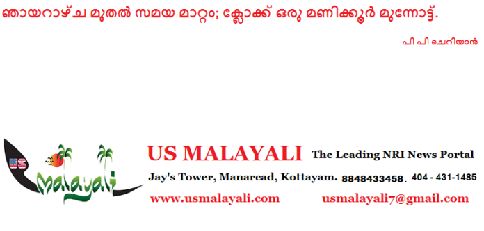 ഡാളസ് : ഈ ഞായറാഴ്ച മാര്ച്ച് 8 നു 2 മണിക്ക് യു.എസില് സമയ മാറ്റം. ക്ലോക്ക് ഒരു മണിക്കൂര് മുന്നോട്ട് തിരിച്ചു വെക്കും. നവംബര് 2 ഞായറാഴ്ച യായിരുന്നു ഒരു മണിക്കൂര് പുറകിലോട്ടു തിരിച്ചു വെച്ചിരുന്നത്