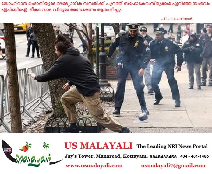 ന്യൂയോർക്ക് മേയർ സോഹ്റാൻ മംദാനിയുടെ ഔദ്യോഗിക വസതിക്ക് പുറത്ത് സ്ഫോടകവസ്തുക്കൾ എറിഞ്ഞ സംഭവത്തിൽ എഫ്ബിഐ (FBI) ഭീകരവാദ വിരുദ്ധ അന്വേഷണം ആരംഭിച്ചു.