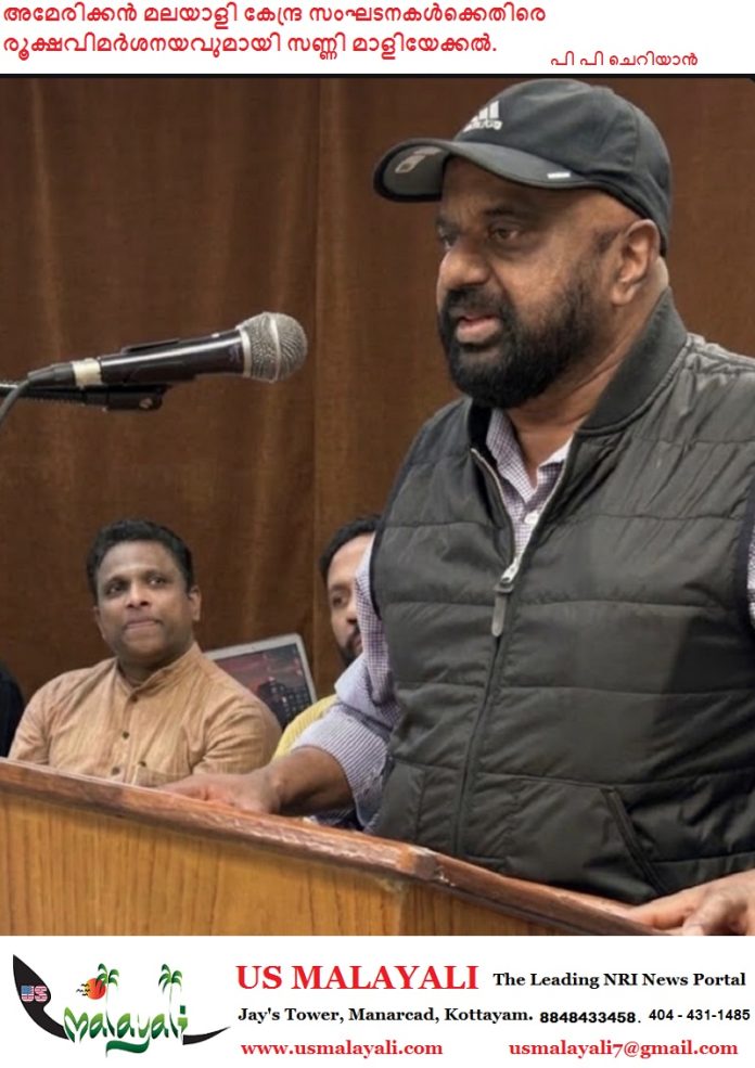 കേരള അസോസിയേഷൻ ഓഫ് ഡാളസ് പ്രസിഡന്റ് ഷിജു എബ്രഹാം അധ്യക്ഷത വഹിച്ചു സമ്മേളനത്തിൽ മലയാളി സംഘടനകളുടെ നിലവിലെ പ്രവർത്തനശൈലിയെയും ഭാരവാഹികളുടെ മനോഭാവത്തെയും പരുഷമായ ഭാഷയിൽ മീറ്റിങ്ങിൽ പങ്കെടുത്ത അമേരിക്കൻ ഫുഡ് ഇൻഡസ്ട്രയിൽ ദീർഘകാലമായി പരിചയ സമ്പന്നനും സാമൂഹ്യ സാംസ്കാരിക പ്രവർത്തകനും എഴുത്തുകാരനും ഇന്ത്യ പ്രസ് ഓഫ് നോർത്ത് ടെക്സസ് പ്ര സിഡന്റുമായ സണ്ണി മാളിയേക്കൽ വിമർശിച്ചു.