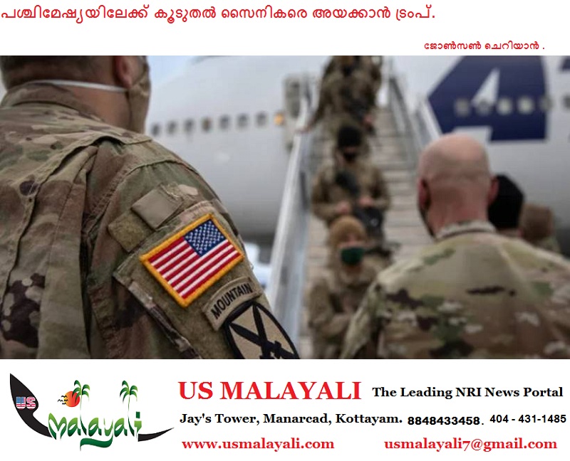 പശ്ചിമേഷ്യയിലേക്ക് കൂടുതൽ സൈനികരെ അയക്കാൻ ട്രംപ് ഭരണകൂടം തയാറെടുക്കുന്നുവെന്ന് റിപ്പോർട്ടുകൾ. ഇറാന്റെ എണ്ണ കയറ്റുമതിയുടെ 90 ശതമാനവും കൈകാര്യം ചെയ്യുന്ന ഖാർഗ് ദ്വീപിലേക്ക് സൈന്യത്തെ അയക്കുമെന്നും വിവരം. ഹോർമൂസ് കടലിടുക്കിലൂടെ എണ്ണ ടാങ്കറുകളെ കടത്തിവിടുന്നത് ഉൾപ്പെടെയുള്ള ലക്ഷ്യങ്ങൾക്കായും അധികസേനയെ ഉപയോഗപ്പെടുത്തുമെന്ന് വാർത്താ ഏജൻസിയായ റോയിട്ടേഴ്സ് റിപ്പോർട്ട് ചെയ്യുന്നു.