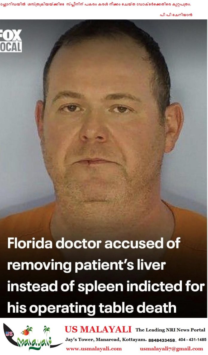 ഫ്ലോറിഡ: അമേരിക്കയിലെ ഫ്ലോറിഡയിൽ ശസ്ത്രക്രിയയ്ക്കിടെ സംഭവിച്ച ഞെട്ടിക്കുന്ന പിഴവിൽ ഡോക്ടർക്കെതിരെ നിയമനടപടി.