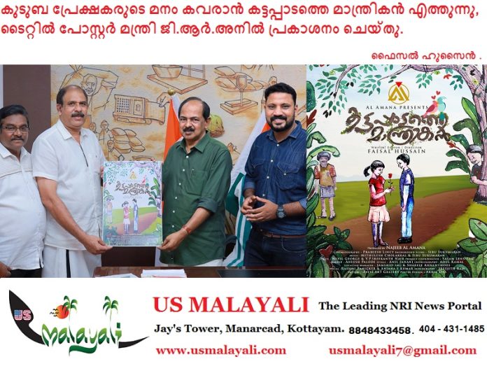 നാട്ടിൻപുറത്തെ ഒരു മാന്ത്രികന്റെ കഥ പറയുന്ന കട്ടപ്പാടത്തെ മാന്ത്രികൻ സിനിമയുടെ ടൈറ്റിൽ പോസ്റ്റർ ഭക്ഷ്യ പൊതുവിതരണ വകുപ്പ് മന്ത്രി ജി.ആർ.അനിൽ ചിത്രത്തിന്റെ പ്രൊഡ്യൂസർ നജീബ് അൽ അമാനയ്ക്ക് നൽകി പ്രകാശനം ചെയ്തു.