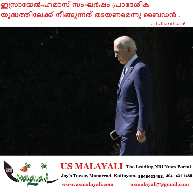 കഴിഞ്ഞയാഴ്ച ഹമാസിന്റെ ആക്രമണത്തിന് ശേഷം പലസ്തീൻ അതോറിറ്റി പ്രസിഡന്റ് മഹ്മൂദ് അബ്ബാസുമായി ബൈഡൻ ആദ്യമായി ഫോണിൽ ബന്ധപെട്ടാണ് ഗാസയിലെ മാനുഷിക ശ്രമങ്ങൾക്ക് അദ്ദേഹത്തിന്റെ പൂർണ്ണ പിന്തുണ വാഗ്ദാനം ചെയ്തത് . അതേസമയം ഗാസയിലേക്ക് മാനുഷിക സഹായമെത്തിക്കാനുള്ള സുരക്ഷിതമായ വഴി ഉടന് തുറക്കണമെന്ന് അബ്ബാസ് ബൈഡനോട് ആവശ്യപ്പെട്ടു. മെഡിക്കല് ഉപകരണങ്ങളും വെള്ളവും വൈദ്യുതിയും എണ്ണയും ഗാസയിലേക്ക് വിതരണം ചെയ്യണം. പാലസ്തീനികള് ഗാസ മുനമ്പില് നിന്ന് കുടിയൊഴിഞ്ഞ് പോകില്ലെന്നും അദ്ദേഹം ബൈഡനെ അറിയിച്ചു. അധിനിവേശ വെസ്റ്റ് ബാങ്കിലെ കുടിയേറ്റക്കാരുടെ ആക്രമണം ഉടന് അവസാനിപ്പിക്കണമെന്നും അദ്ദേഹം ആവശ്യപ്പെട്ടു.
