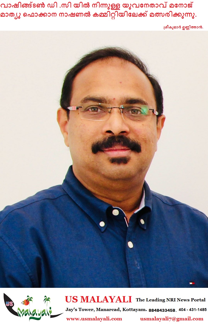 വാഷിങ്ങ്ടൺ ഡി .സി: വാഷിങ്ങ്ടൺ ഡി .സി യിലെ ഫൊക്കാനയുടെ പ്രമുഖ പ്രവർത്തകനും ,മത-സാംസ്കാരിക ,സംഘടനാ പ്രവർത്തകനുമായ മനോജ് മാത്യു ഫൊക്കാന 2024 -2026 നാഷണൽ കമ്മിറ്റിയിലേക്ക് മത്സരിക്കുന്നു. സൗമ്യ പ്രകൃതക്കാരനായ മനോജ് വാഷിങ്ങ്ടൺ ഡി .സിയിലെ മലയാളികളുടെ ഏതു കാര്യങ്ങൾക്കും കൃത്യമായ ഇടപെടലുകൾ നടത്താറുണ്ട് . വാഷിങ്ങ്ടൺ ഡി .സിയിലെ സാമൂഹ്യ രാഷ്ട്രീയ സാമുദായിക മേഖലകളില് നിരവധി സംഭാവനകള് നല്കിയിട്ടുള്ള മനോജ് ഫൊക്കാനയുടെ വിവിധ കൺവെൻഷനുകളുടെ നടത്തിപ്പിനായി രൂപീകരിക്കപ്പെട്ട പല കമ്മിറ്റികളിലും അംഗവുംമായിരുന്നു. ഒരു ചാരിറ്റി പ്രവർത്തകൻ കൂടിയായ മനോജ് പല ചാരിറ്റി പ്രവർത്തങ്ങൾക്കും നേതൃത്വം നൽകിയിട്ടുള്ള വെക്തികൂടിയാണ്.