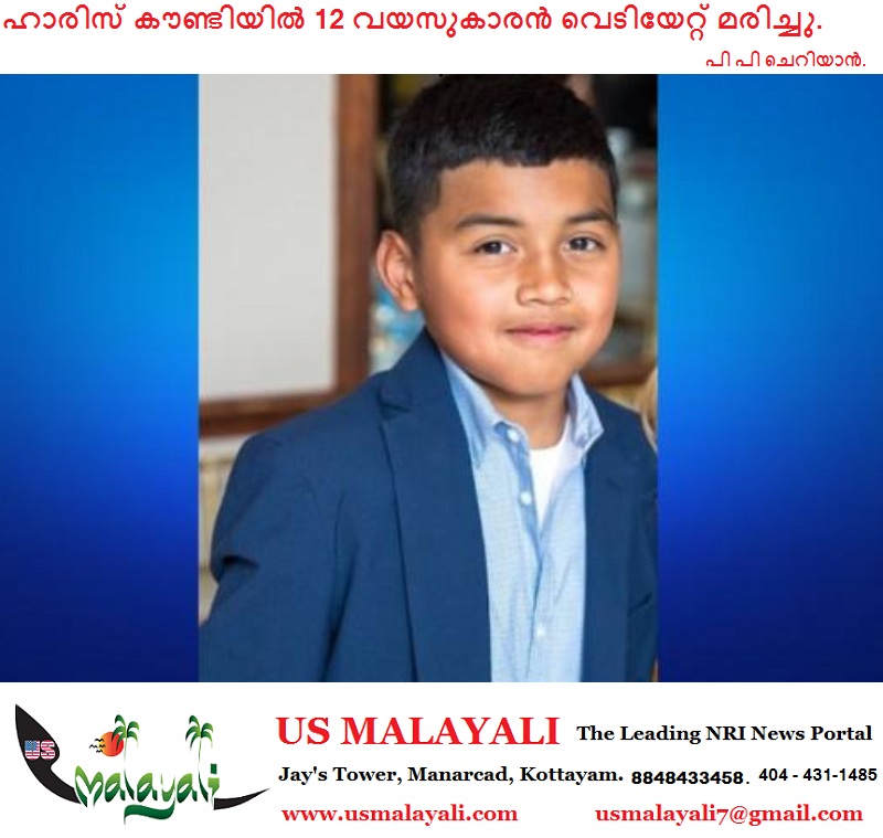 ഹാരിസ് കൗണ്ടി(ഹൂസ്റ്റൺ) – തിങ്കളാഴ്ച പുലർച്ചെ കിഴക്കൻ ഹാരിസ് കൗണ്ടിയിൽ ഉണ്ടായ വെടിവെപ്പിൽ 12 വയസ്സുള്ള ആൺകുട്ടി മരിച്ചു.