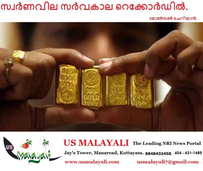 സ്വർണവില സർവകാല റെക്കോർഡിലേക്ക്. ഇന്ന് ഗ്രാമിന് 70 രൂപയാണ് വർധിച്ചത്. ഇതോടെ ഒരു ഗ്രാം സ്വർണത്തിന് വില 5945 രൂപയായി. ഇതോടെ ഒരു പവൻ സ്വർണത്തിന് വില 47,560 രൂപയായി. 18 കാരറ്റിന്റെ ഒരു ഗ്രാം സ്വർണത്തിന് വില 4935 രൂപയാണ്.അന്താരാഷ്ട്ര സ്വർണവില 2118 ഡോളർ വരെ പോയതിനുശേഷം എപ്പോൾ 2012 ഡോളറിൽ എത്തിയിട്ടുണ്ട്. അമേരിക്ക എക്കാലത്തെയും വലിയ പണപ്പെരുപ്പത്തെ അഭിമുകീകരിക്കുന്നതാണ് വിലവർധനവിന് പ്രധാനകാരണം.