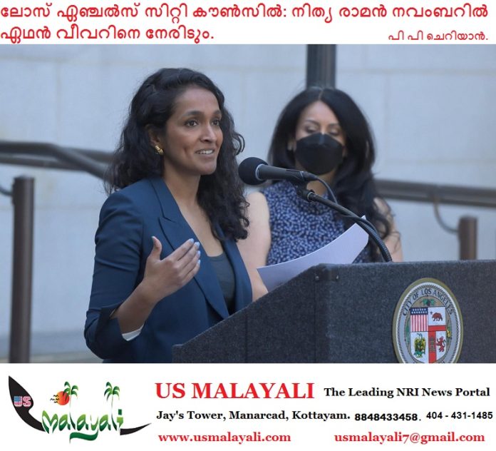 ലോസ് ഏഞ്ചൽസ്, സിഎ – ലോസ് ഏഞ്ചൽസ് സിറ്റി കൗൺസിലിലെ 4-ആം ഡിസ്ട്രിക്റ്റ് സീറ്റിലേക്കുള്ള നവംബറിലെ രണ്ടാംഘട്ട തിരഞ്ഞെടുപ്പിൽ നിലവിലുള്ള നിത്യ രാമൻ ചലഞ്ചർ ഏഥൻ വീവറിനെ നേരിടും.
